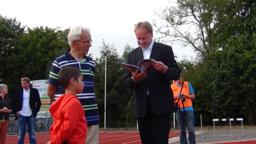 Zaterdag 15 september was het zo ver. Op sportieve wijze – met atletiekwedstrijden, ook voor de gehandicapte atleten - vierde av Spirit haar 40-jarig jubileum. Voor deze feestelijke gelegenheid was wethouder Willem de Jager ook aanwezig om samen met de voorzitter de prijzen uit te reiken en om de jubileumuitgave 1972 – 2012 in ontvangst te nemen. Dit laatste werd gedaan door het oudste (84) en jongste lid (7). Leuke bijkomstigheid is dat het jongste lid tevens het 400 ste lid van Spirit is.