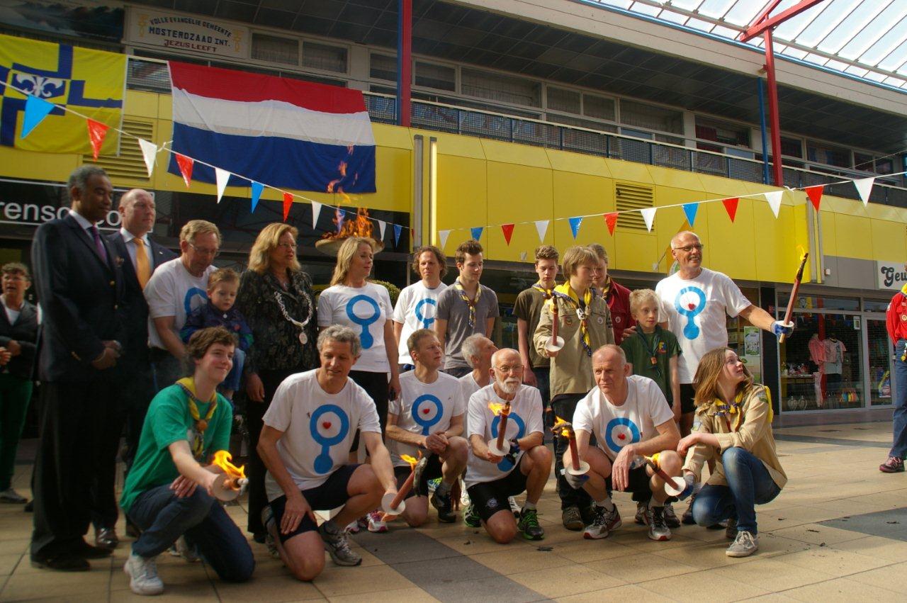Het vuur werd door hardlopers van AV Spirit met een fakkel vanuit Wageningen naar Lelystad gebracht.