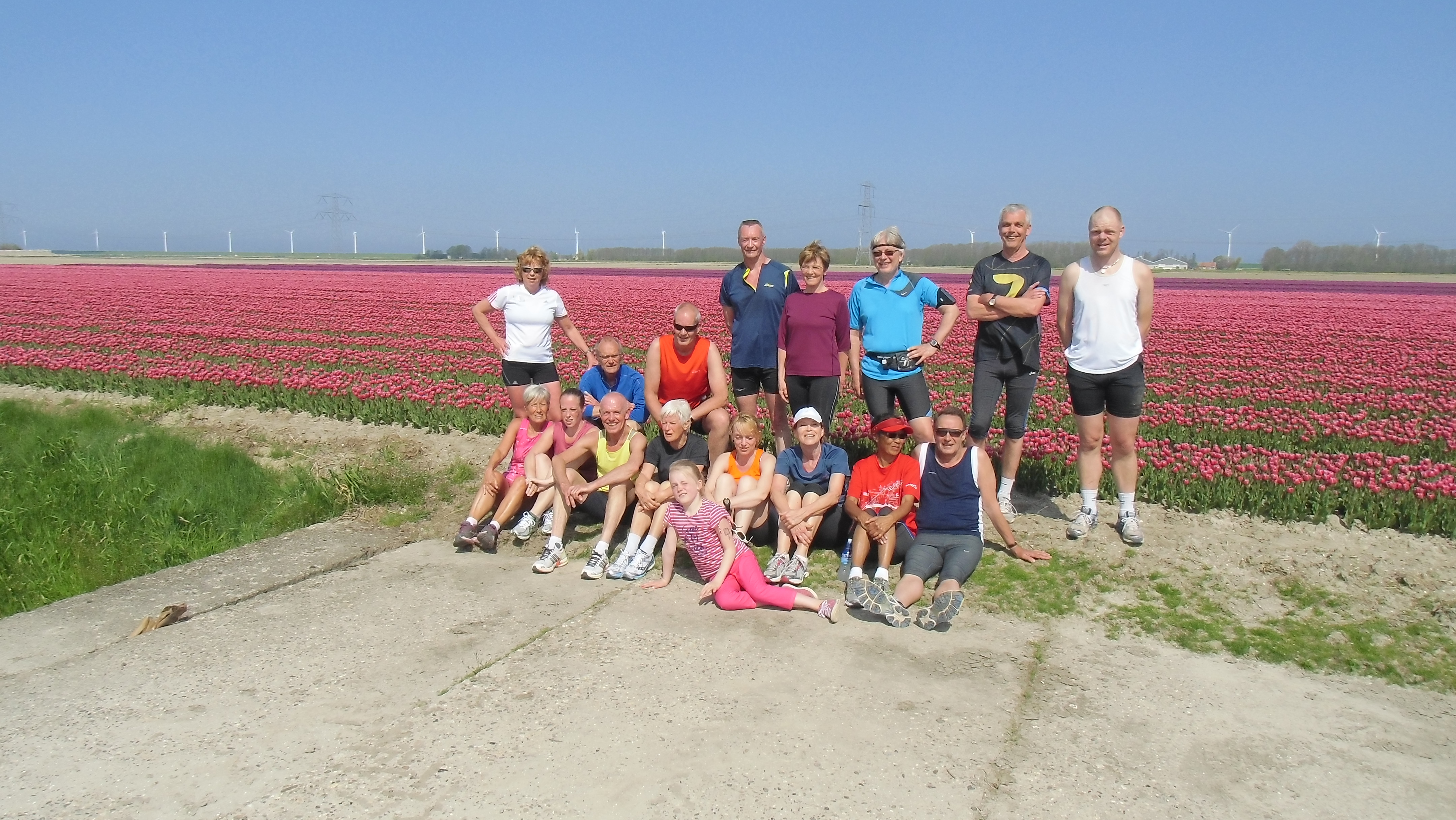 Een groep van ongeveer twintig hardlopers meldde zich aan Visvijverweg 32, van waaruit Maarten een route van ongeveer tien kilometer had uitgestippeld. Hiervan had hij geen half werk gemaakt: van tevoren had hij agrariërs benaderd met de vraag of de groep over hun land mocht lopen. Gelukkig stelden zij zich eveneens coöperatief op, waardoor de groep vlak langs de tulpenpracht kon hardlopen.