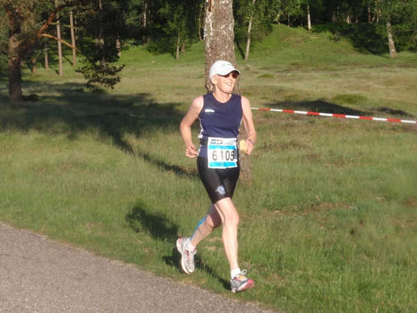 Na een klein uurtje waren de 10 km-lopers aan de beurt. Gary had zich ter plaatse ingeschreven en moest daarom achterin starten, terwijl de wedstrijdlopers voorin stonden. De start was smal en onder de bomen, zodat de GPS niet werkte. Al gauw kwam er ruimte voor mijn eigen tempo. In het begin zag ik al 2 dames van mijn categorie lopen (rugnr. 6500?), die kon ik makkelijk voorbij gaan. Ook Els Raap had ik in het vizier, maar zij loopt de kortere afstanden altijd sneller dan ik, dus die moest ik zien te volgen. Later bleek zij een minuut voor mij te zijn geëindigd. Halverwege zag ik Willem, die was zeker meer voorin gestart. Ik kon hem passeren en probeerde mijn snelheid vast te houden. Af en toe had ik last van de wind, maar de meeste tijd zorgde de wind voor extra afkoeling. Uiteindelijk finishte ik in een netto tijd van 47:37, waar ik niet op gerekend had. Met deze tijd mag ik met de 7heuvelenloop weer voorin starten.