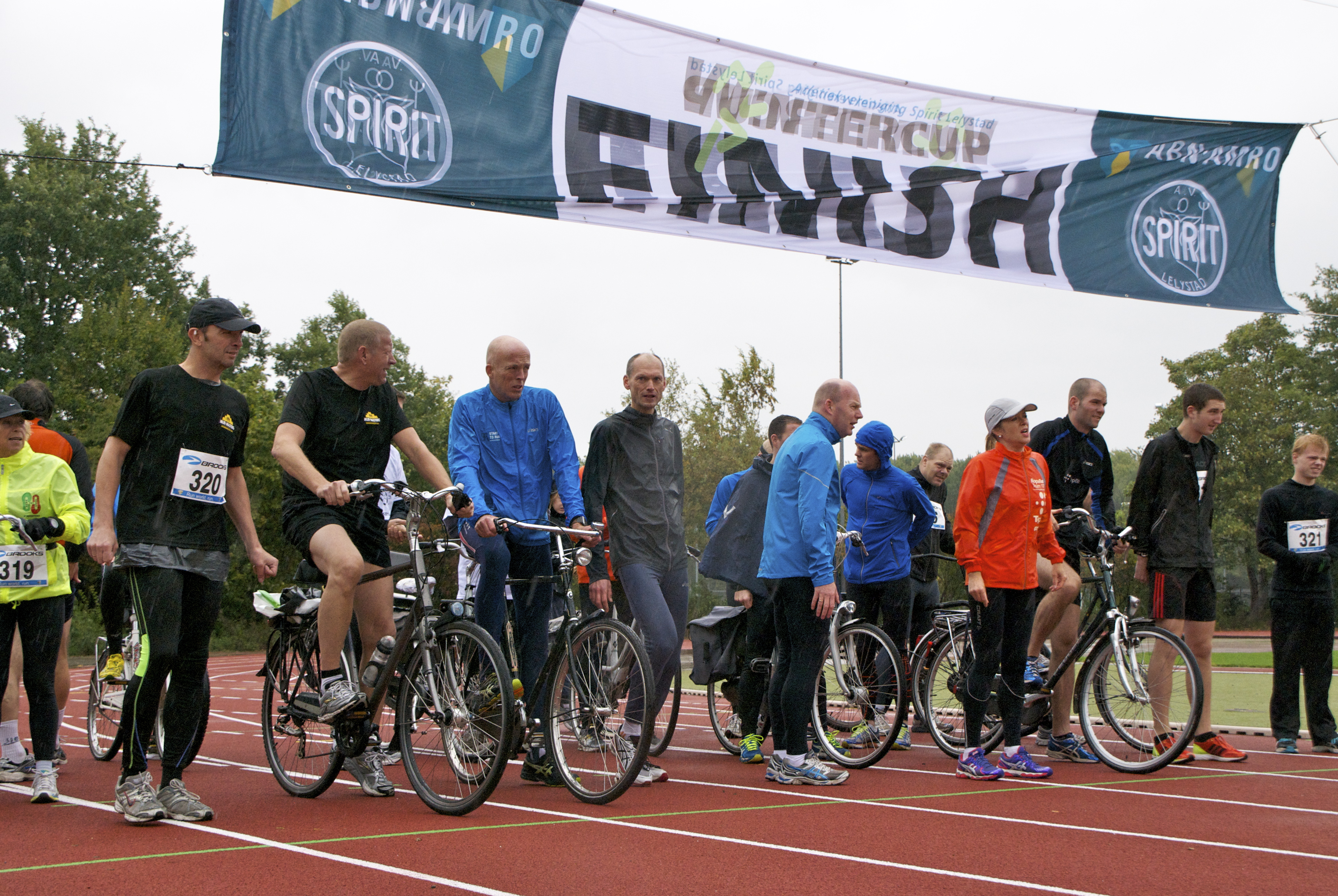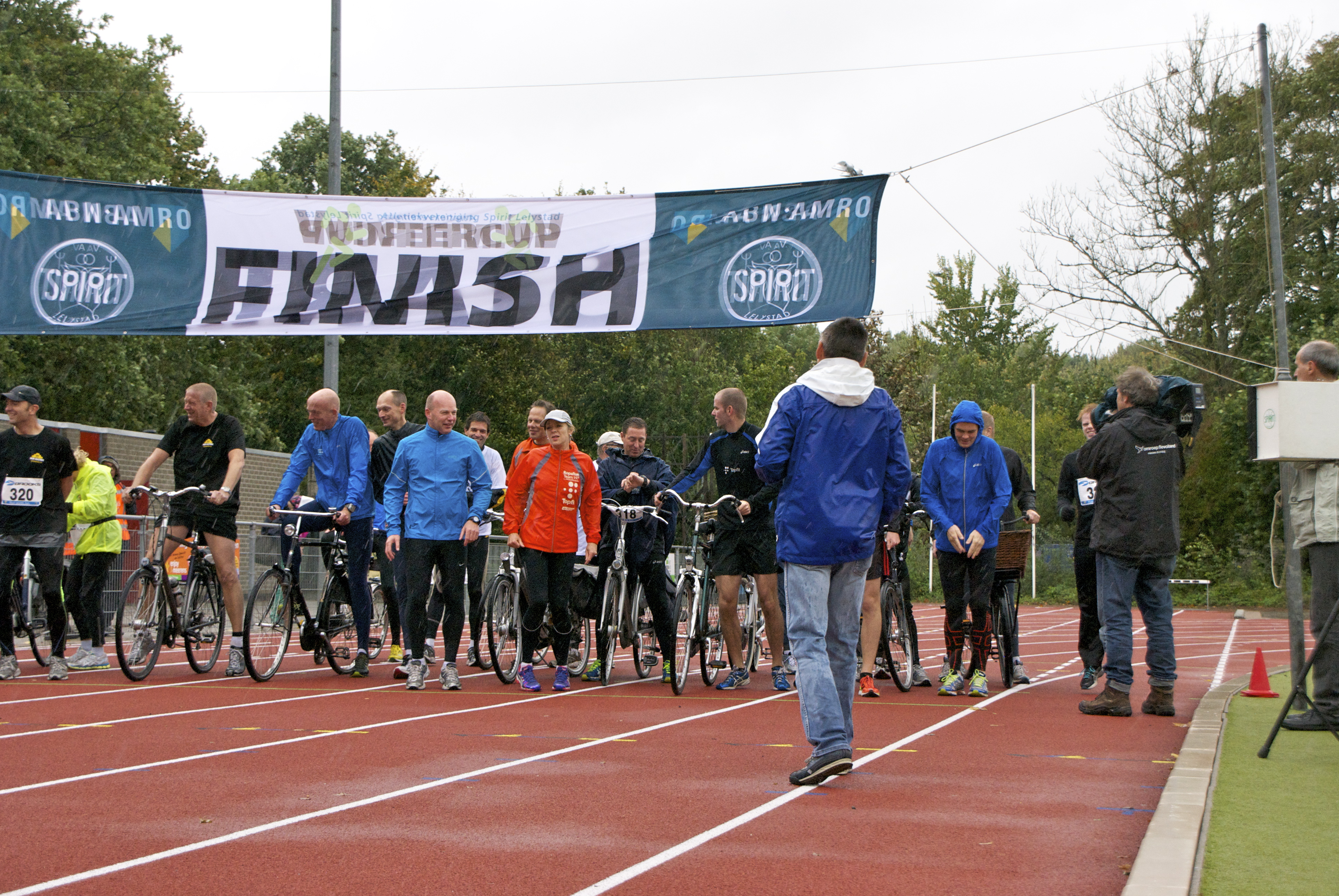 De winnende tijd van de cycle-run over tien kilometer was 36:51 en deze kwam op naam van Jilles Warmer en Patrick Fransman. Terwijl de verkeersregelaars en alle andere vrijwilligers de kraag van de regenjas nog verder opzetten, begonnen de atleten van de lange adem aan hun tweede ronde. Ondanks de toenemende onderkoeling sloot het winnende team van René Ester en Keimpe Reitsma hun twintig kilometer af met een keurige tijd van 1:35:49. Naast de winnaars was er ook een prijs voor de teams die hun prestatie vooraf het beste hadden ingeschat. Het laatste draagt ertoe bij dat de cycle-run naast een sportief evenement ook een gezellig samenzijn is dat beter weer en meer deelnemers verdient. Mogen we jou medio oktober 2014 ook met een sportieve medestrijder begroeten bij de cycle-run?