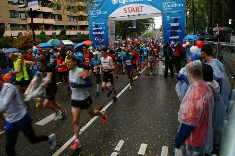 Dat de omstandigheden in Eindhoven bar en boos waren op 13 oktober zal niemand verbazen. Heel Nederland werd geteisterd door wind, regen, kou en wateroverlast. Het was duidelijk dat het beoogde verbetering van het parcoursrecord er niet in zat. De winnaar zat er met een eindtijd van 2.09.11 met ruim 3,5 minuut boven.