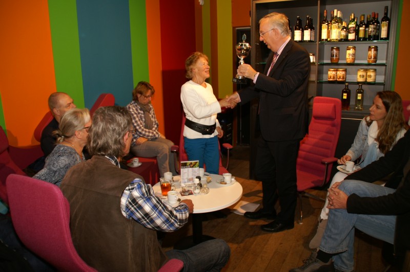 Op donderdag 17 oktober 2013 heeft Andries Greiner in biebcafé het Verhaal een beker met de titel “Topspel(l)ers Dictee 2013” uitgereikt aan het dicteeteam van AV Spirit. Dit team heeft op woensdag 18 september deelgenomen aan het Groot Lelystads Dictee 2013 in de raadszaal van het stadhuis. De heer Greiner is juryvoorzitter van het dictee dat na tien jaar voor de laatste maal georganiseerd werd door de gemeente Lelystad en CMO Flevoland.
