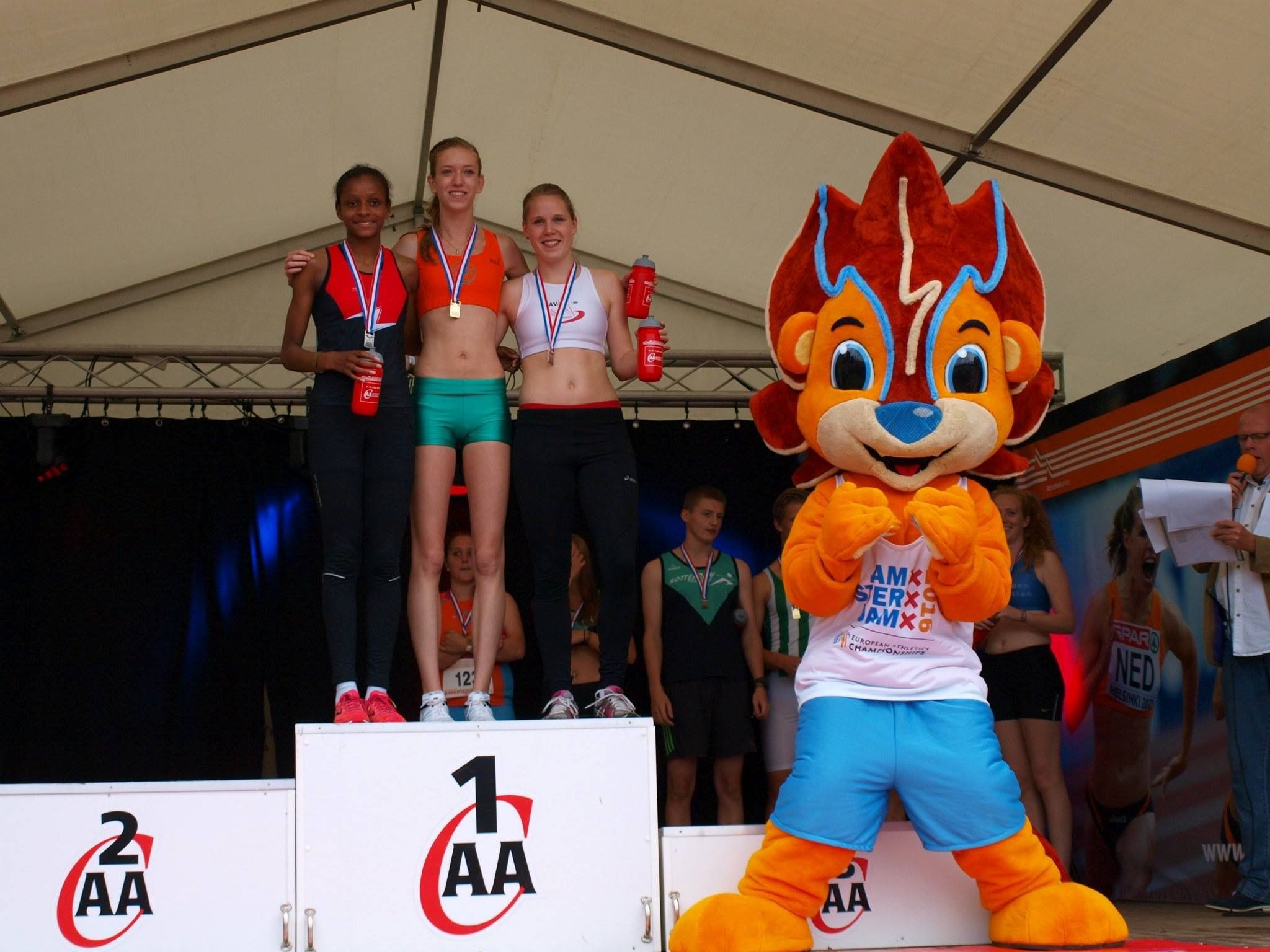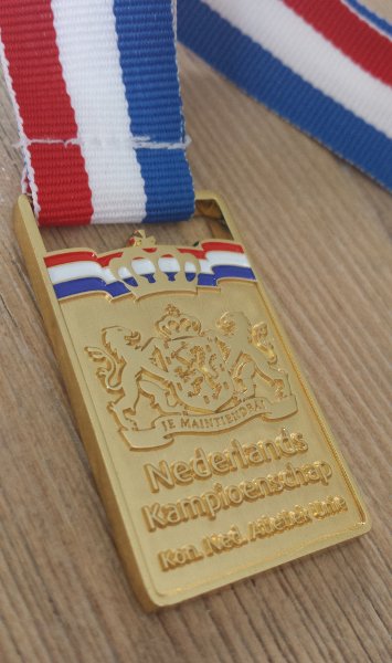 Buiten adem stond Elke Molenaar even later de speaker te woord en trots nam ze later in de middag haar eerste gouden medaille op een Nederlands Kampioenschap in ontvangst.