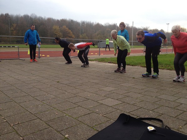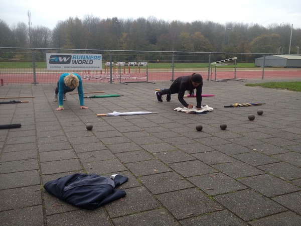 De lopers zoeken hun grenzen op (of gaan er flink overheen) en bijten zich vast in push-ups, squat-jumps en sprintjes. In tweetallen worden gegevens van elkaar gemeten en uiteraard ontbreken de onderlinge aanmoedigingen niet!