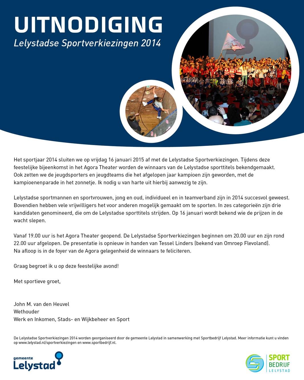 De Lelystadse Sportverkiezingen zijn op vrijdagavond 16 januari in de Agora. Iedereen is welkom en de toegang is gratis. Spiritlid Ria van Weezep en de ex-Spiritleden Elke Molenaar en Jelmar Bos zijn genomineerd.