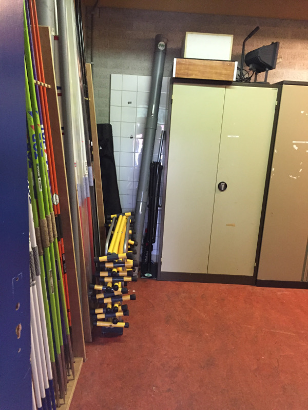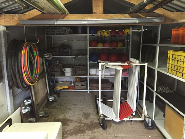De jeugdtrainers, hun behulpzame kinderen en enkele vrijwillige ouders hebben afgelopen weekend een grote opruimactie gehouden. Het kostte een heleboel zweet, soms een beetje bloed en het voelde soms als een archeologische opgraving, maar het eindresultaat mag er zijn. Er zijn drie prachtig opgeruimde hokken ontstaan en heel veel bewegingsruimte. Alles heeft nu zijn eigen plekje gekregen met een label, zodat verwarring over waar iets thuishoort niet meer kan ontstaan.