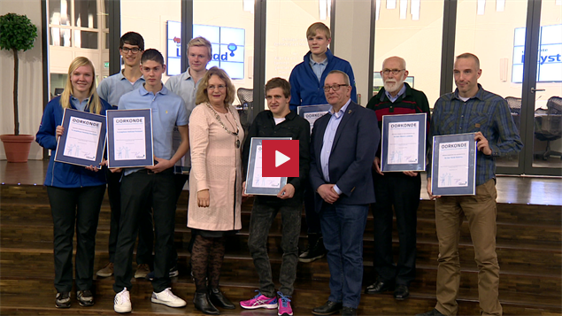 Willem Landman ontving op het gemeentehuis een oorkonde vanwege zijn nationale titels in 2015: