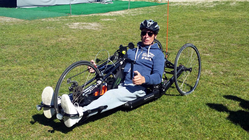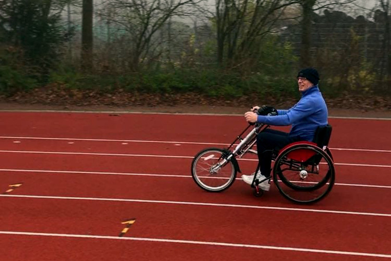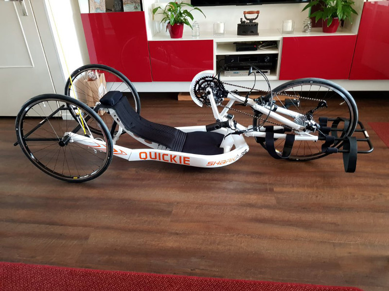 Hoewel je bij handbiken niet direct aan een atletiekvereniging denkt, is het wel mogelijk om bij ons deze sport te beoefenen. Sinds enkele maanden sluiten de atleten met een handbike aan bij de RaceRunning atleten op de woensdagmiddag van 15.45 - 16.45 uur. Handbiken is een sport die voornamelijk wordt beoefend door mensen met een motorische beperking. De atleet beweegt de handbike (speciaal soort fiets) door met zijn armen (of bovenste ledenmaten) de pedalen rond te draaien. Een handbike is te krijgen in verschillende uitvoeringen. Zo is er één die aangekoppeld kan worden aan een rolstoel, zijn er handbikes waar je in zit en handbikes waar je ligt. Bent u nieuwsgierig geworden naar het handbiken en lijkt het u leuk om dit ook te gaan doen? Voor meer informatie neem contact met ons op.